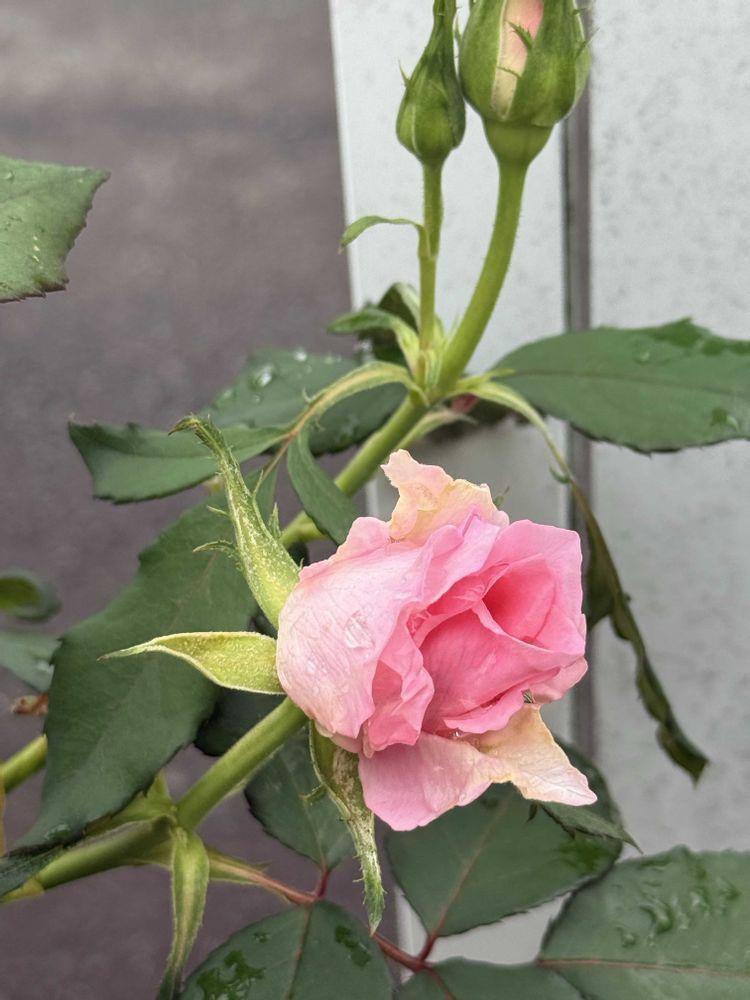 涼しくなって、新芽が出始めた頃バラの消毒液を散布しました。