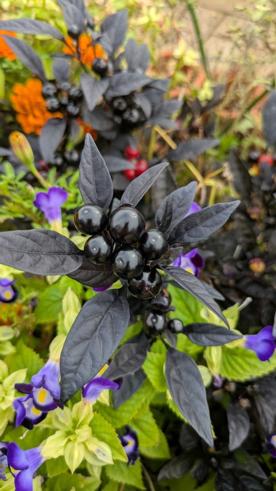 散歩道🚶、花壇にブラックパールとトレニアが咲いています🌸🌸
