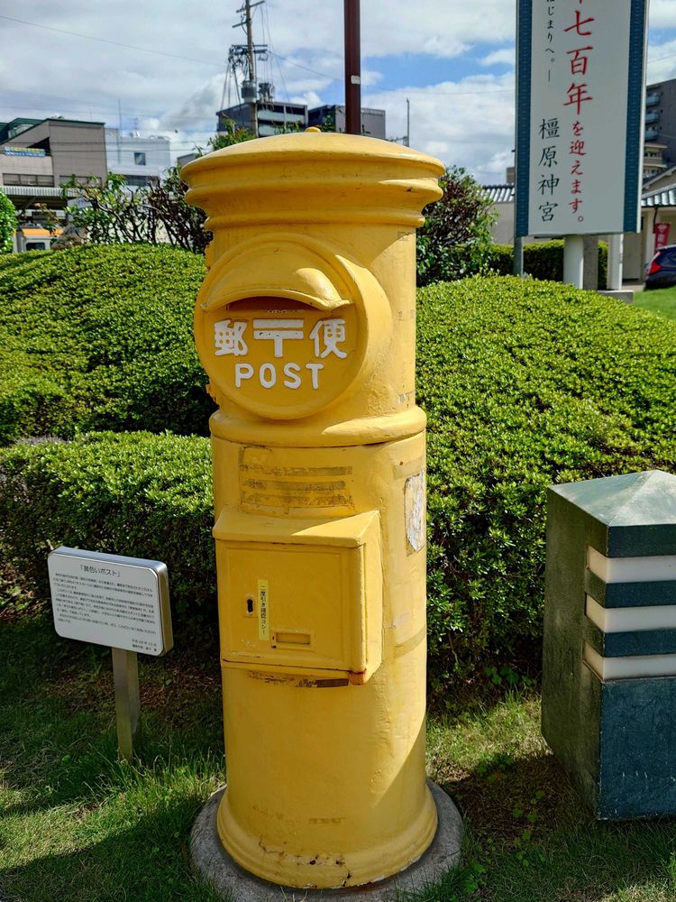 橿原神宮前に黄色いポスト、珍しい