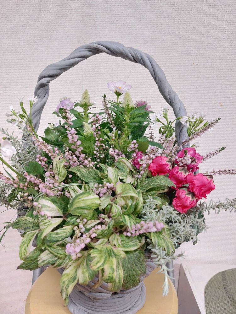 先週のギャザリング講座🌿の作品です。ピンクの可愛い花が咲いてくれるともっと可愛いなるけど🩷🩷🩷