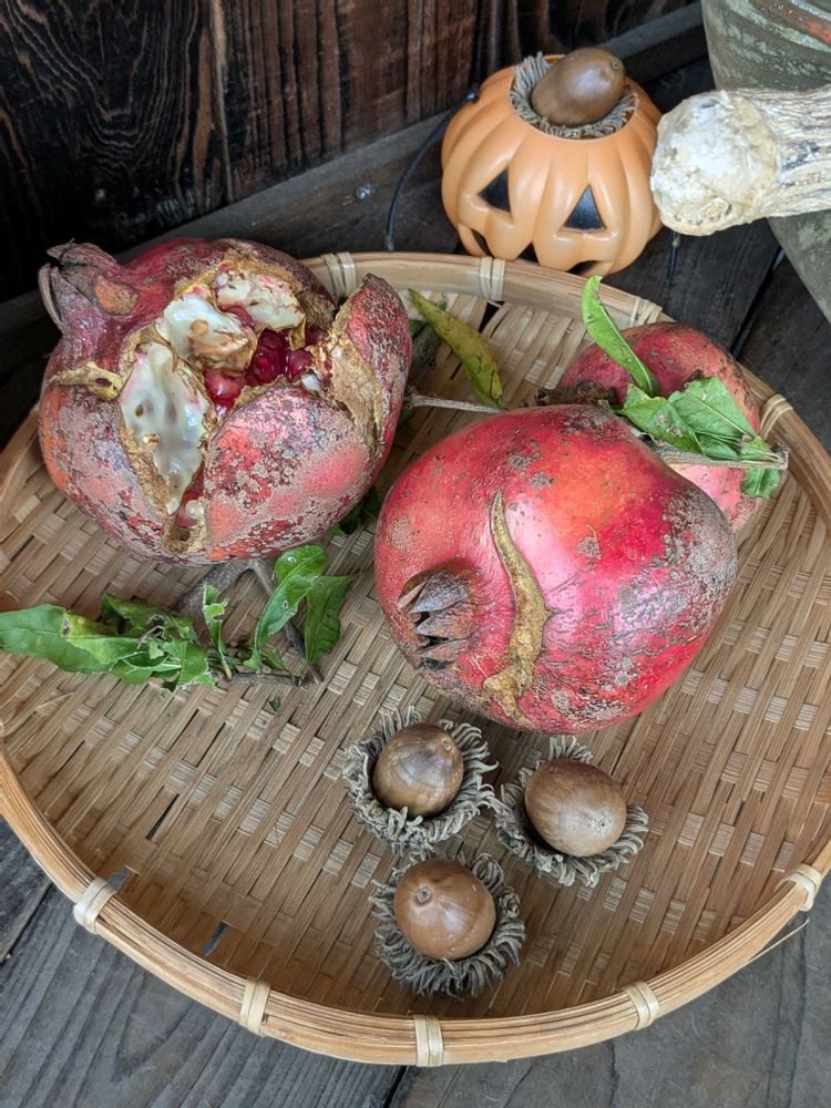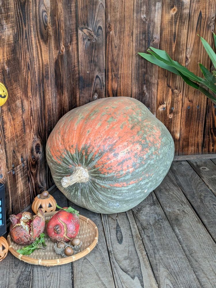 リアルザクロ(ザクロ)と大きなリアルカボチャが絵になってました〜
