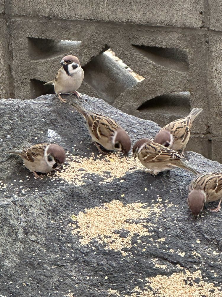 スズメちゃん達は、たまに取り合いしながら賑やかに食べていましたよ🐧🐧🐧