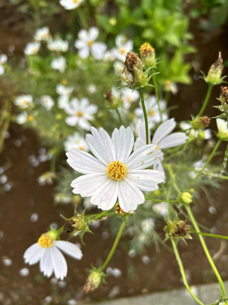 🤍ご近所の空き地に咲いていましたかわいい😍大好きな白いコスモス♡🎶