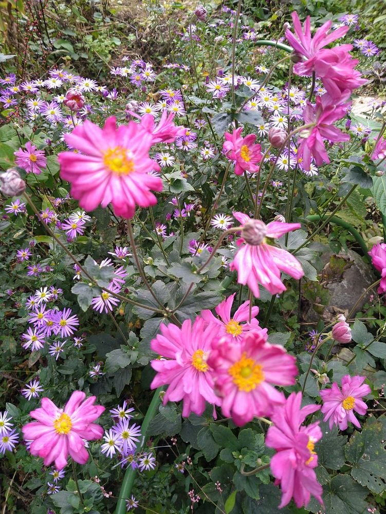 こんなにたくさんの種類のシュウメイギクさんがお庭に咲いてるなんて素晴らしいですね~👏🙌
