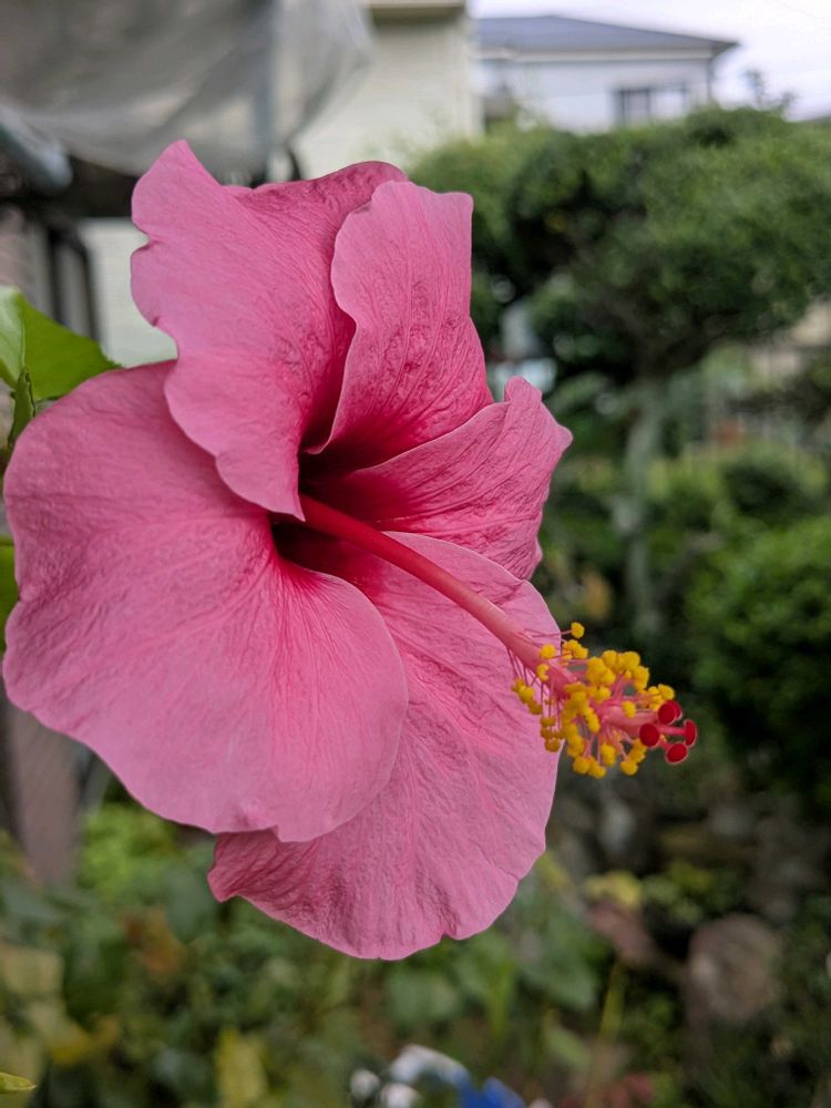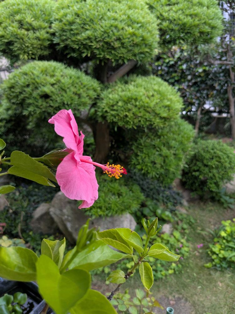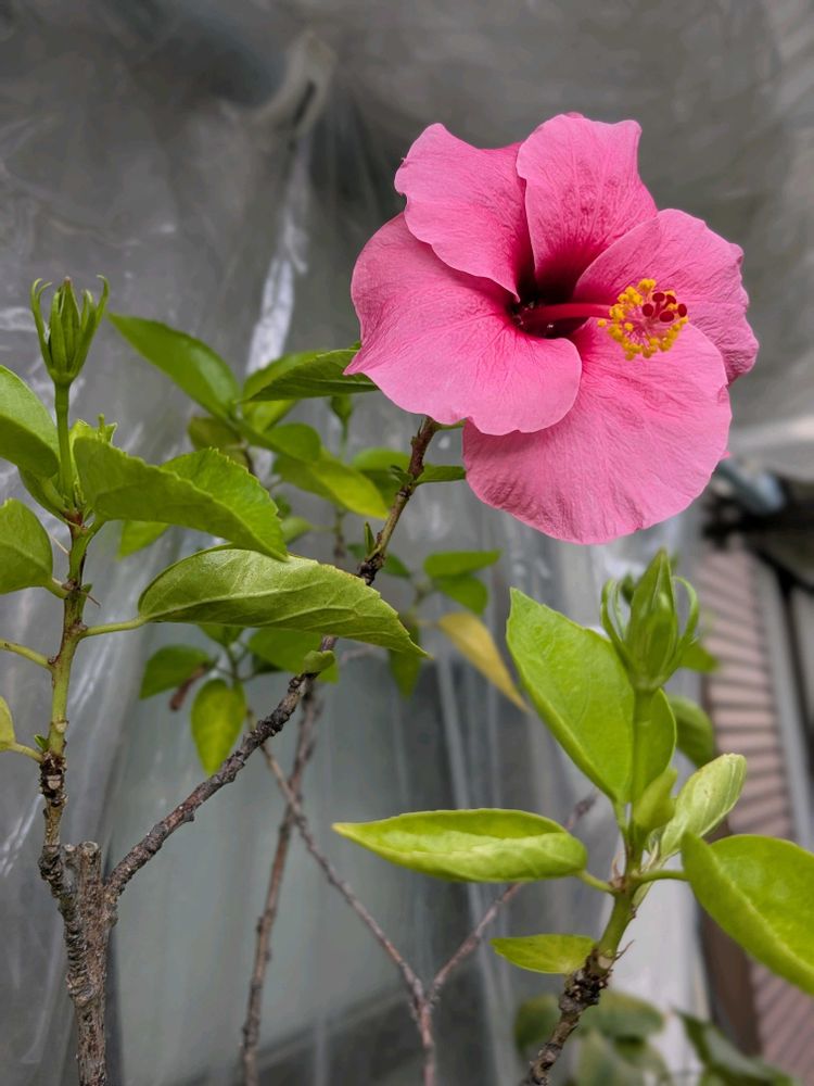 ハイビスカス🌺が次々と咲いています…長寿、葉は小さくて少ないが、長期間咲いているのよ👏🥰🎶🎉