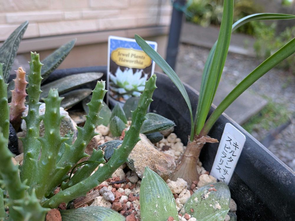 連投すみません。鉢が小さいと子株が増え過ぎできつかったので、型に応じで寄せ植えしました。どの子が来年まで残ってくれるでしょうか?