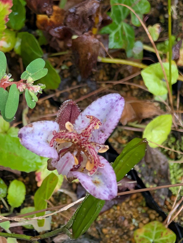 ホトトギスが咲いてると思ったが何か違う?スイレンボクの挿し木した事忘れてた〜今年もたくさん挿し木したからね〜そろそろ防寒対策もしなけりゃならないのに長雨のせいで体力が削られてます