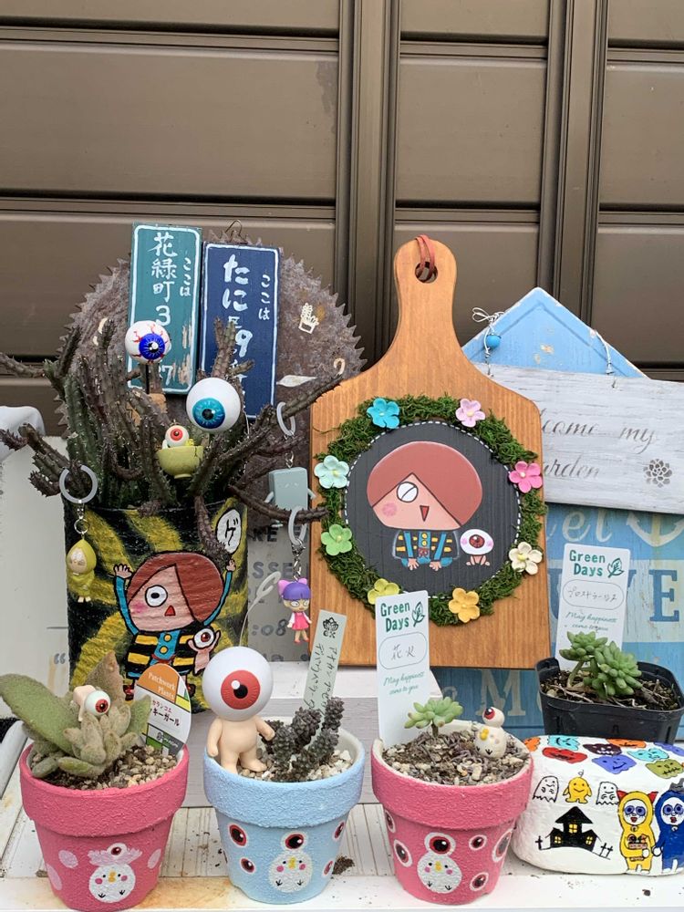 後ろのみたりんちゃんの目玉のオヤジリメ缶のフェルニアに鬼太郎ファミリー、ツリー🎄の様に吊るしてみたよ🤣