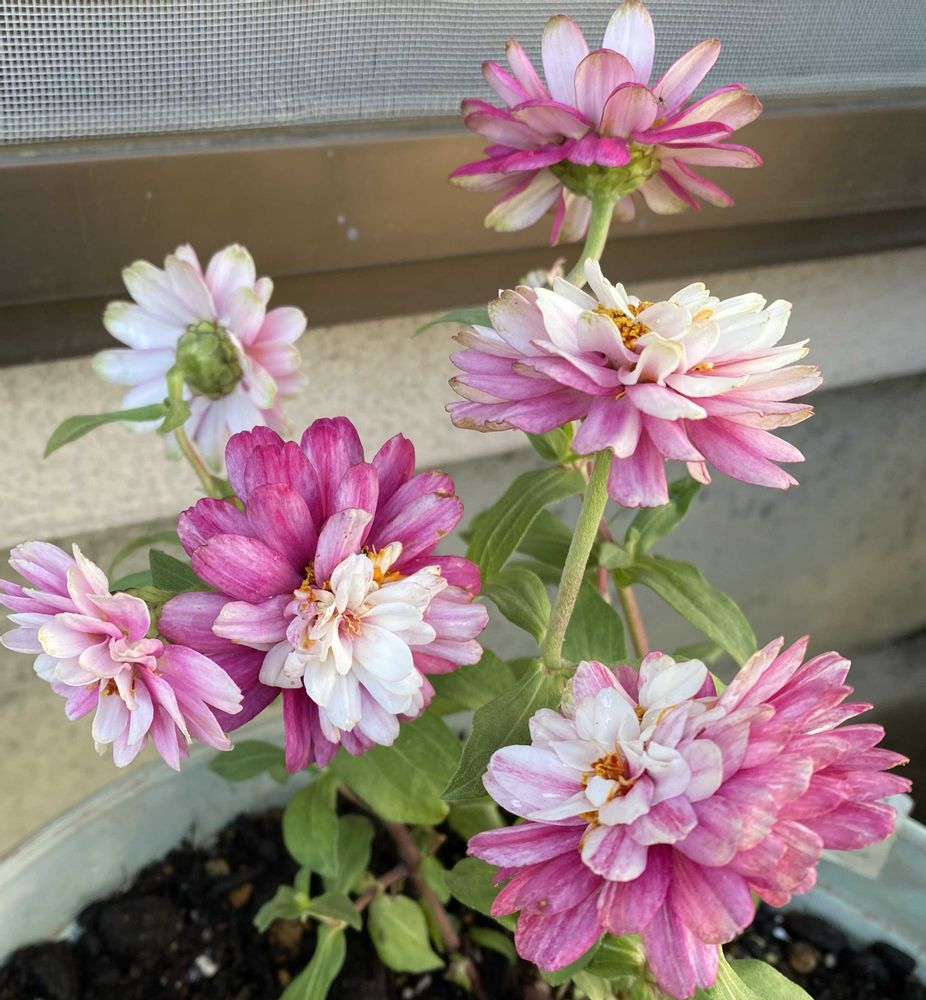 ジニアが可愛いい花色で咲いています🩷(♡>艸<)
