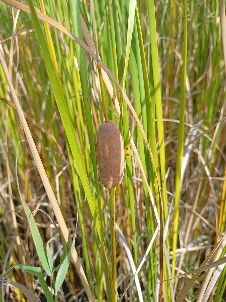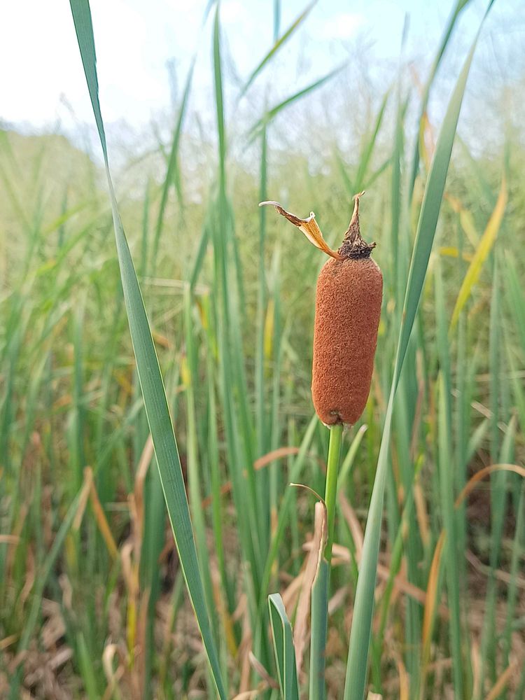 コガマは夏に刈り取られたんですが、また生えてきて穂ができました。🥰