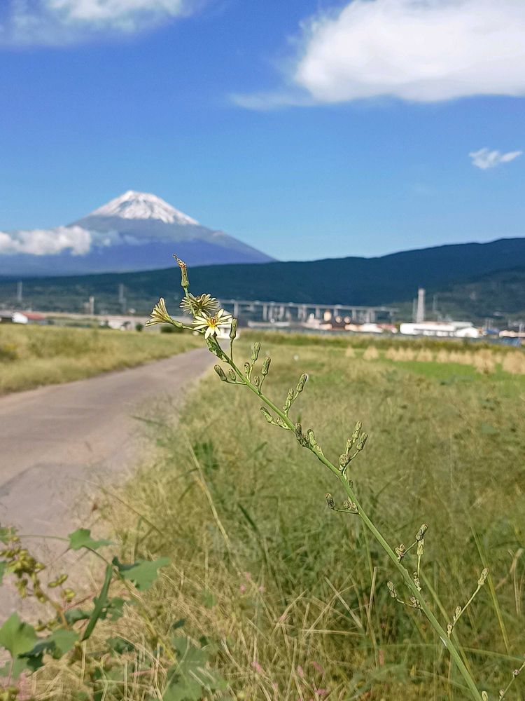 5⃣ 富士山初冠雪の日 この道の横にコガマが生えてます。