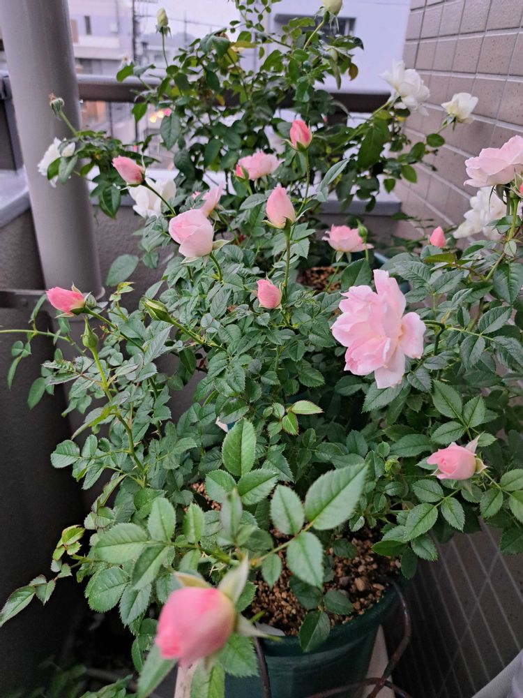 秋のバラが咲き進んでいます。ミニバラのチュチュオプティマ、ボレロは満開に近づいています