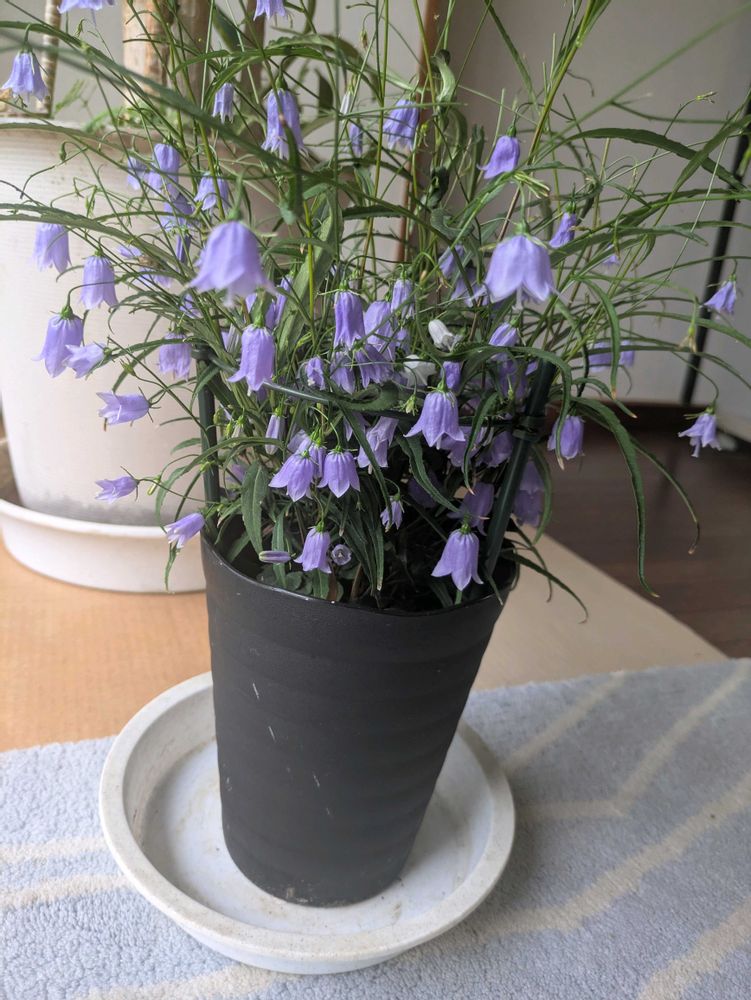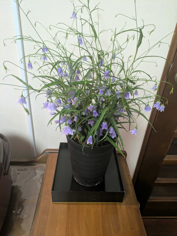 イワシャジンは、日陰好きな山野草です。だから、サンルームから、部屋に持ってきました。💜💜💜💜💜