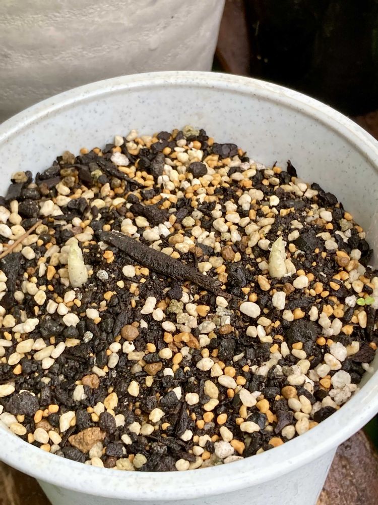鉢に植え付けしておいたら、芽が出たことに、今日気がつきました。