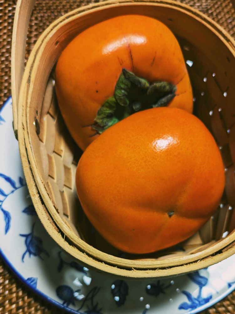 ピカピカの美味しそうな柿ですね。