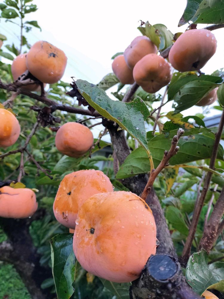 青空の元だったら柿の実も綺麗な🟠オレンジ色だったのに
