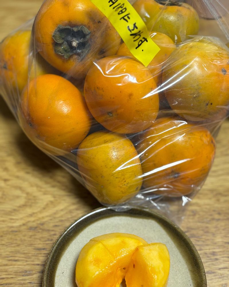 4枚目)私が柿を好むので、同時進行で焼酎でさわした柿を送ってくれます。