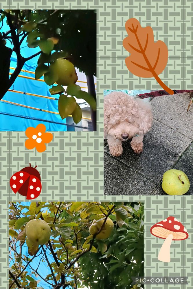 最初は、誰かがりんごを落として行ったのかと思ったけど、カリンの🌳の下で、見上げると、大きな実が幾つもなってました😆😆😆