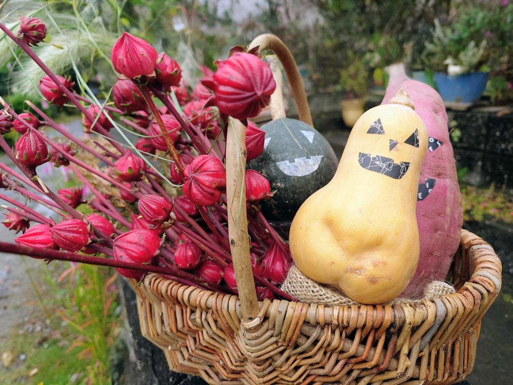 雨が心配で大した準備ができませんできたが、野菜をハロウィン仕様で飾りました✌