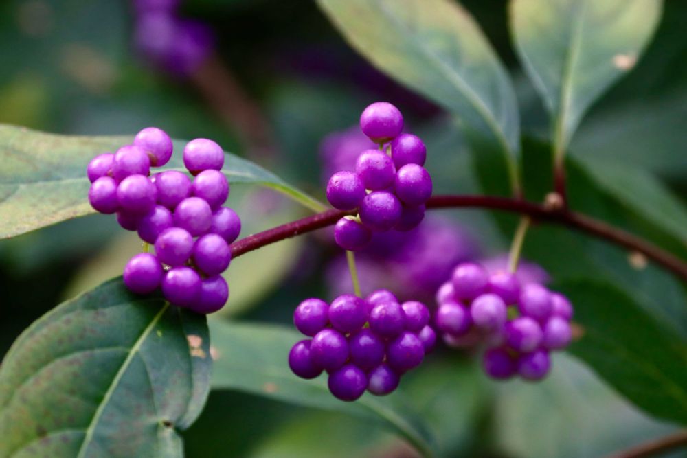 秋に鮮やかな紫色の実をたくさんつけ、花が少なくなる秋の庭を明るく彩ります🟣🟣🟣🟣🟣💚