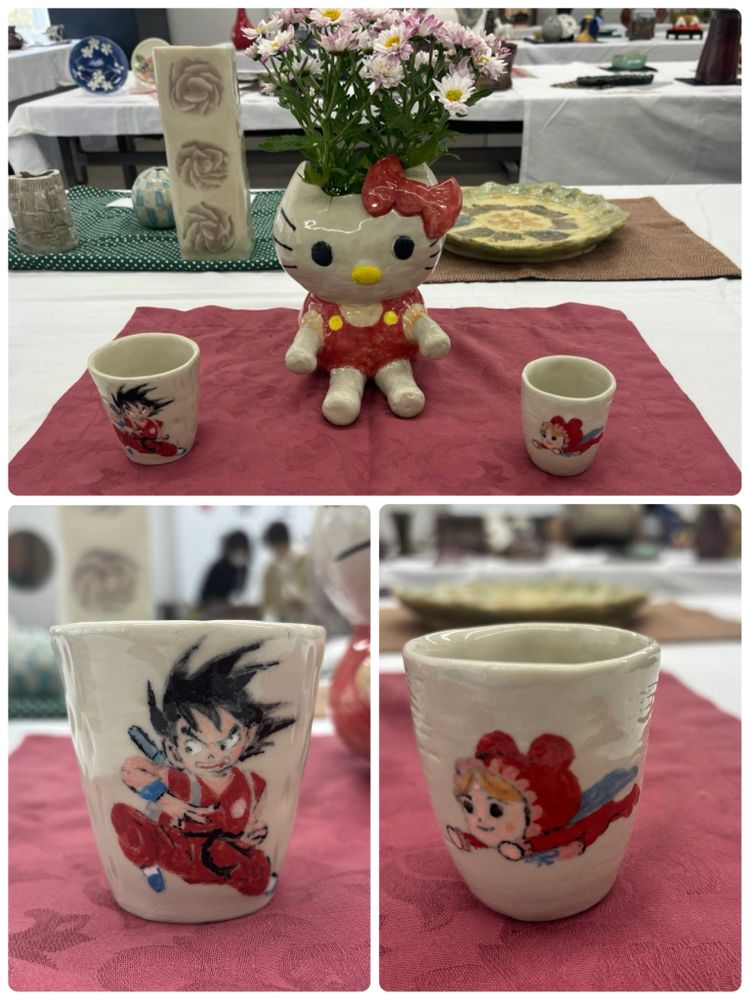 陶芸以外に絵画、習字、折り紙、編み物などの展示もありました‼︎