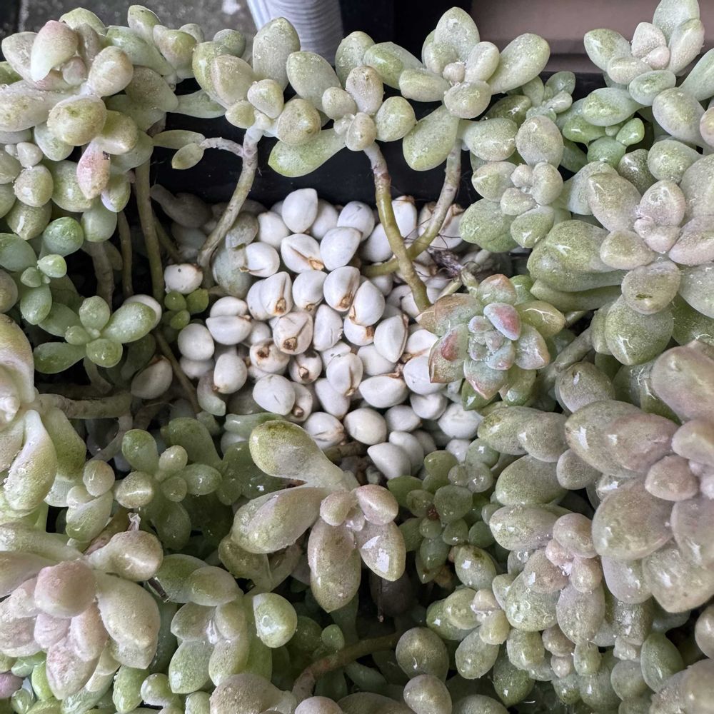 この上に他の多肉ちぎって置いてあったから、えっ と思いどけたらこの白いのかいっぱい😆