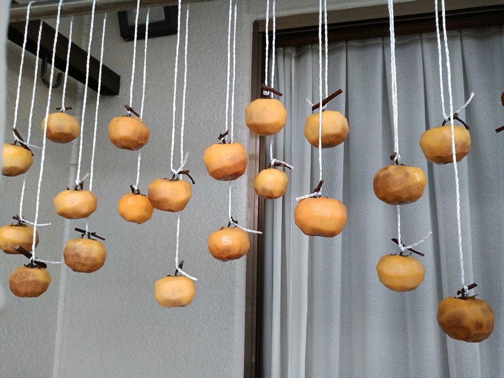 ご近所さんからいただいた渋柿を干し柿にしました!