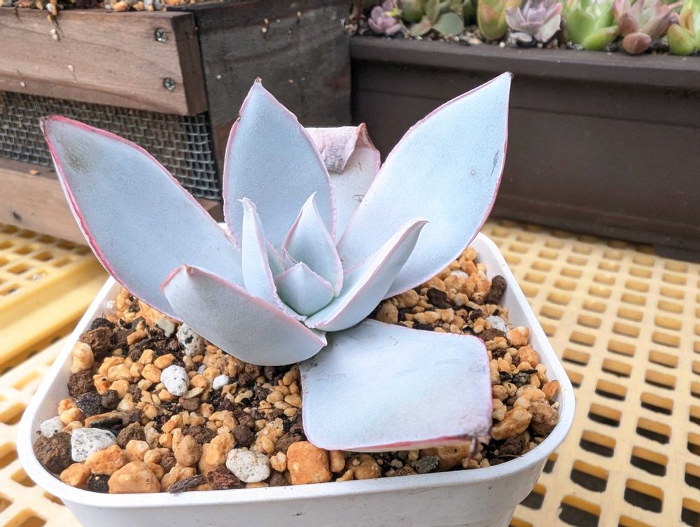 以前は気にせず上から水やりしまくってましたが、底面給水を徹底してるほうが、こうして綺麗な子に育ちますね😅