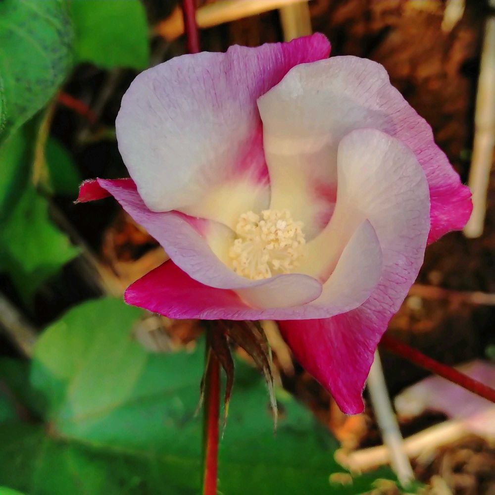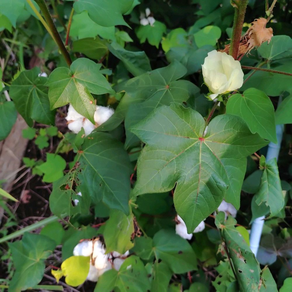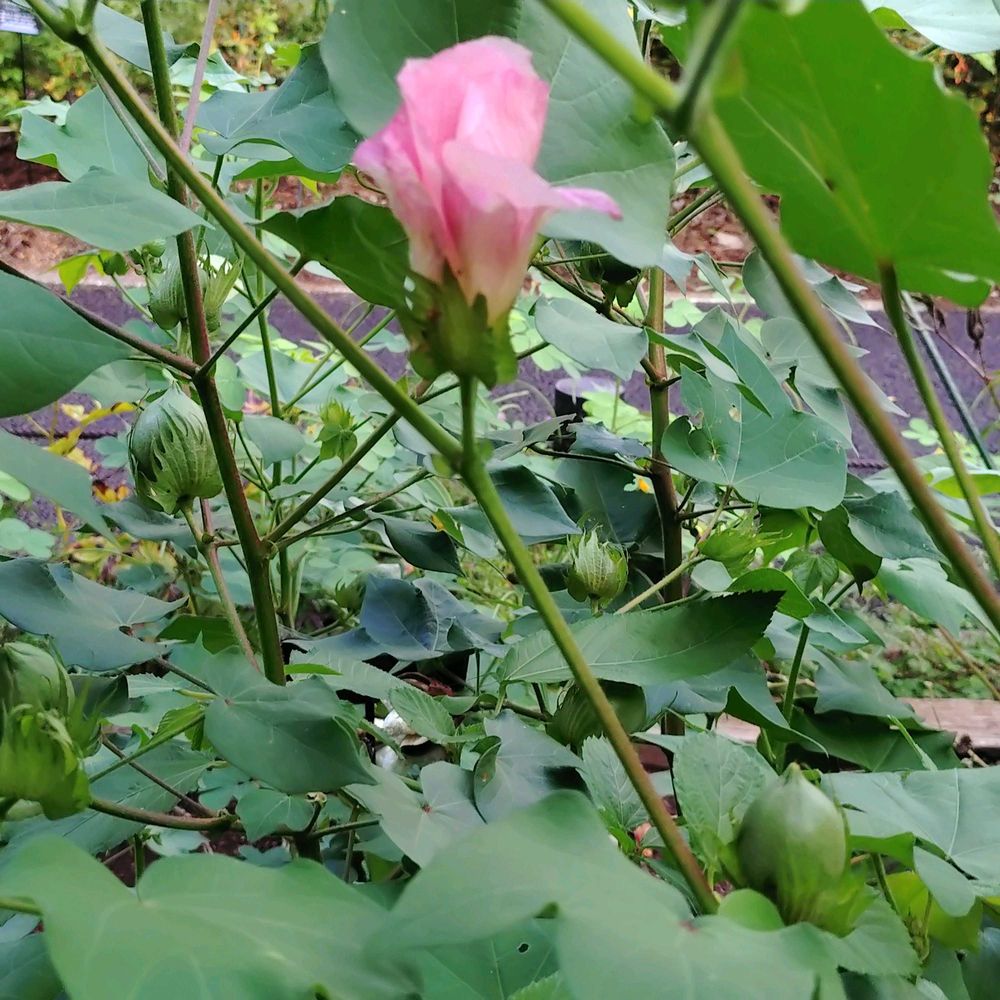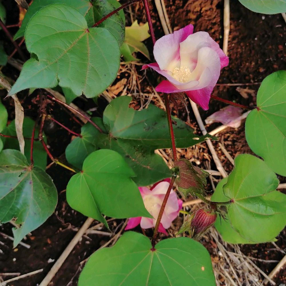 10月初め シオンやエビスグサを見た場所で綿のお花も綺麗に咲いてました❤️🩷🤍 柔らかそうなワタも見えました🤍