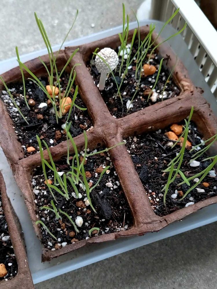 種蒔きしたバニーテールさんにキノコ出現😆🍄コロンとしてて可愛らしいからそのままにしておいたら、あっと言う間に萎びました🤣💦