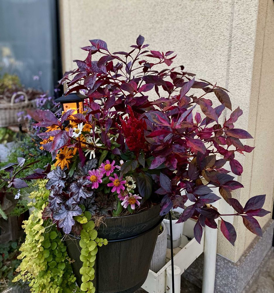 赤葉センニチコウが大きくなりすぎてHalloweenのソーラーライトが隠れてしまってます´д` ;