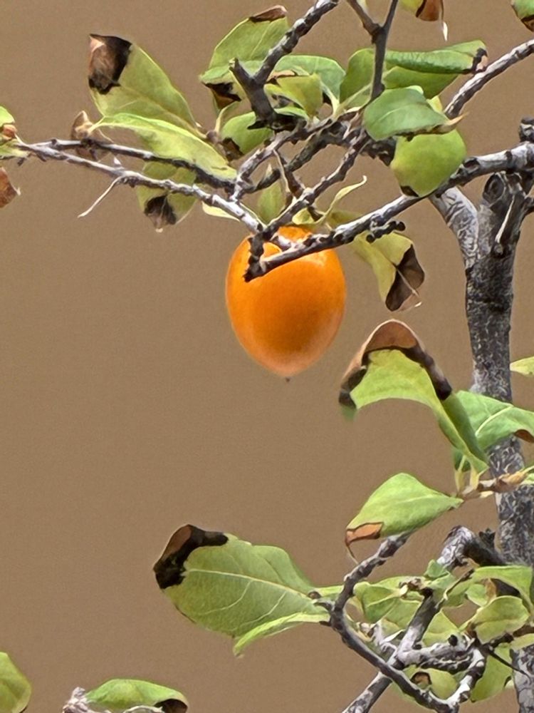 今日のお花「カキ」の一種、「ロウヤガキ」のpicsです。🍊😄👌