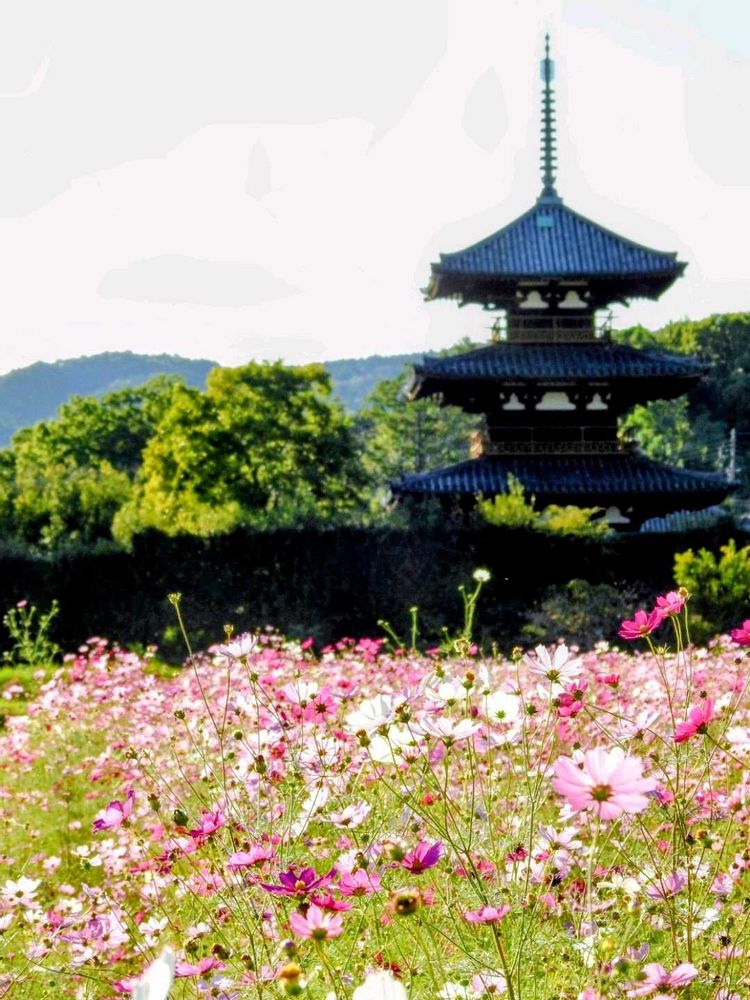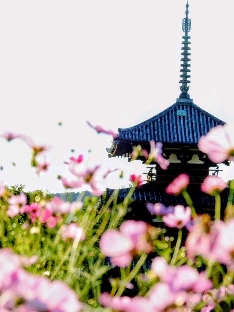卍🌸🏵️💮法起寺とコスモス💮🏵️🌸卍