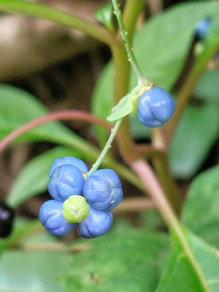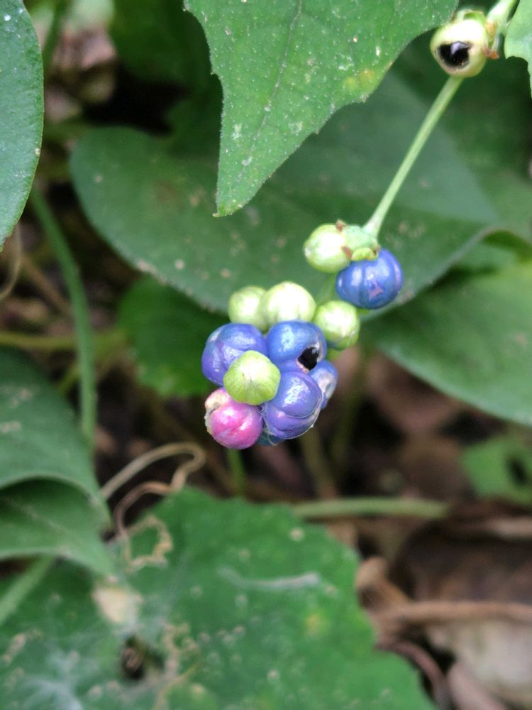 ノブドウほど、たくさんは見かけないけれど、ノブドウにも負けない位美しい実ですよね💜💙