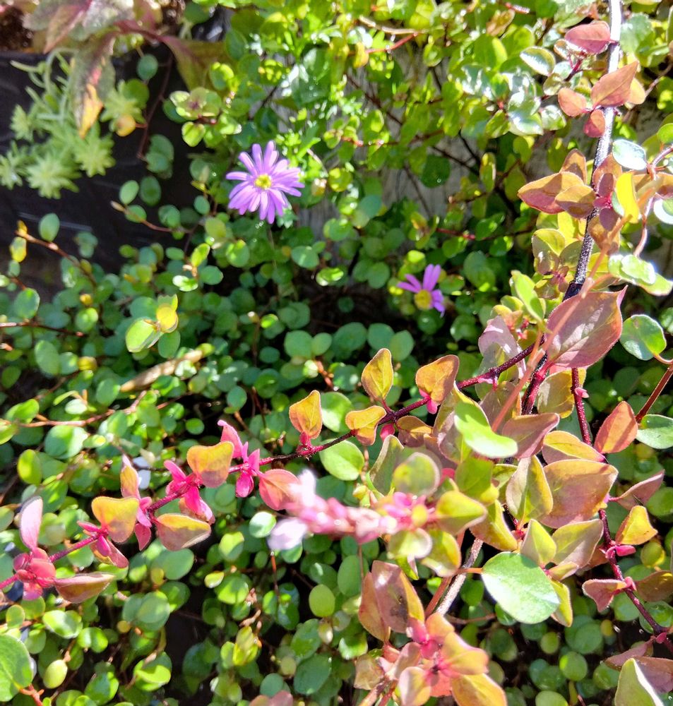③ブラキカムがオレガノ マルケ゚リータの間から咲いています💜