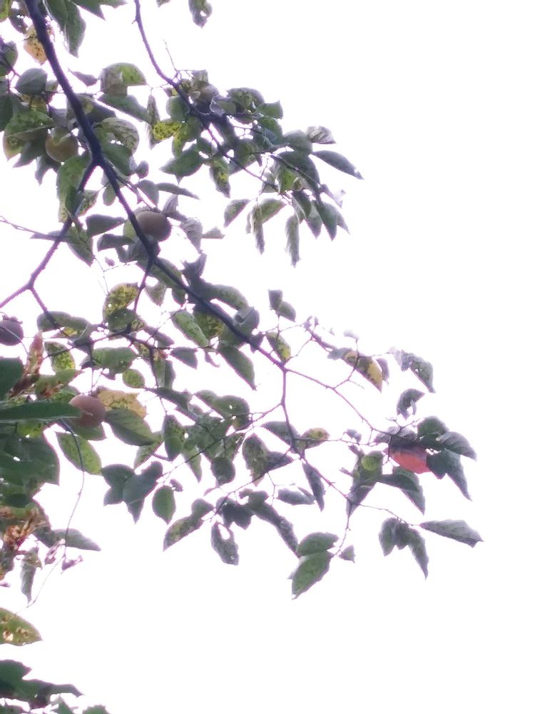 多分次郎柿の台木だったのか、次郎柿の下の方に生えてる豆柿を🐦が運んだみたいです😅