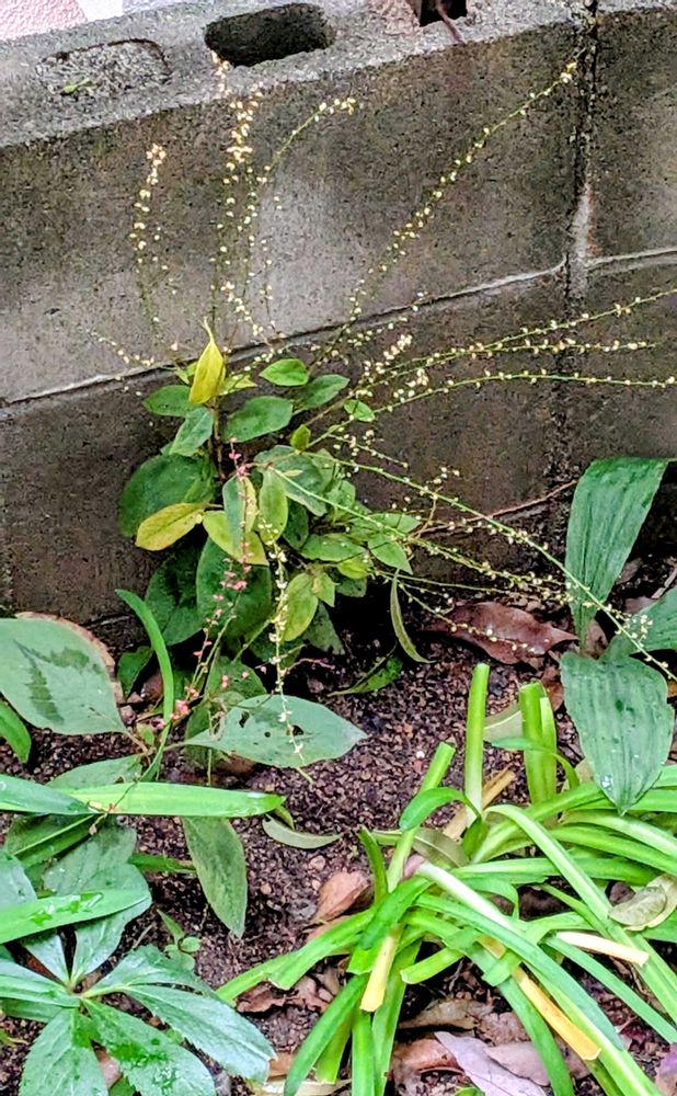 お庭にもミズヒキのお花と花よりすごく大きな葉っぱ🌿🌿🌿