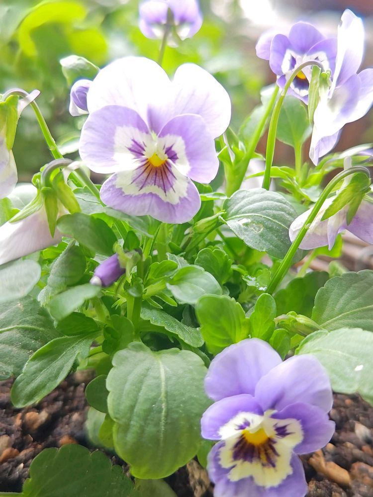 公園のイベントのお土産、花付きの良いビオラ。小さな籠🧺に植えて。