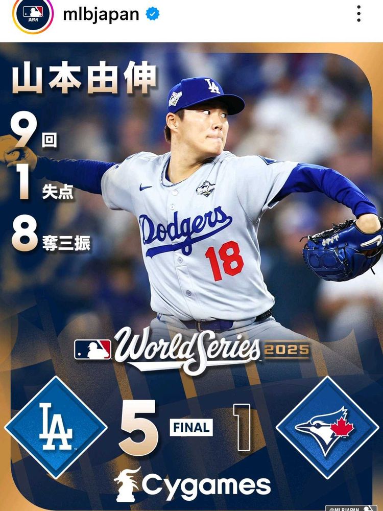 昨日はドジャース、山本由伸投手の先発。ポストシーズン2試合連続の完投勝利🙌🙌🙌。