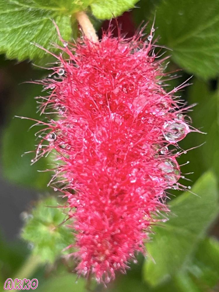 花友さんのキャットテール(猫の尻尾)に雨粒