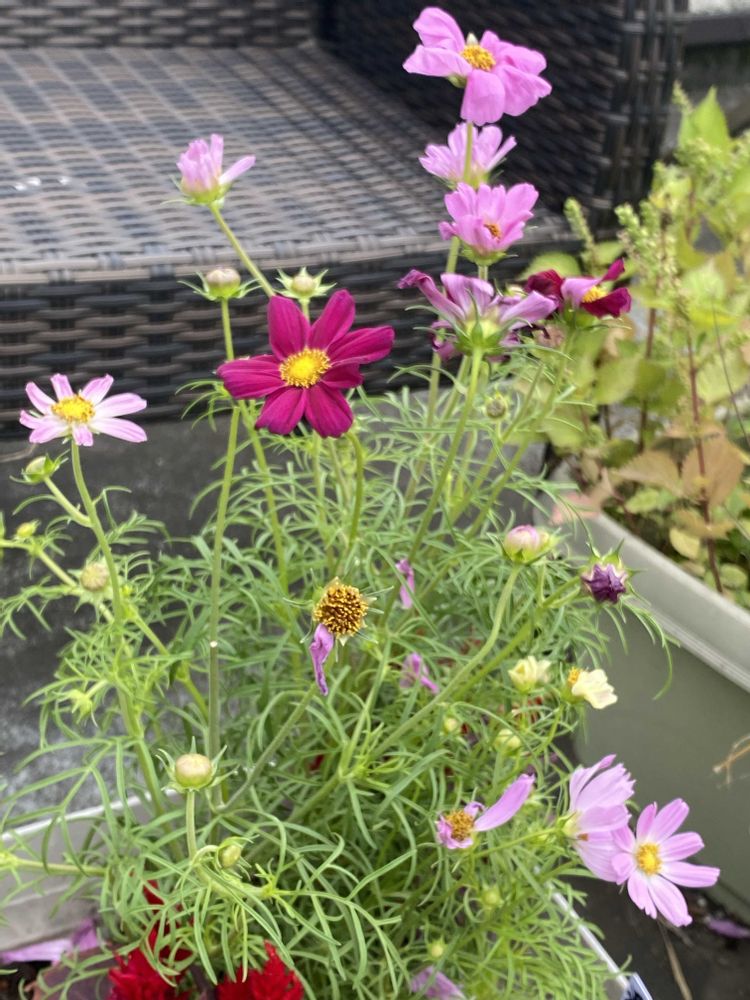 いくこさんのお家の屋上にコスモスが咲いているのね🌸