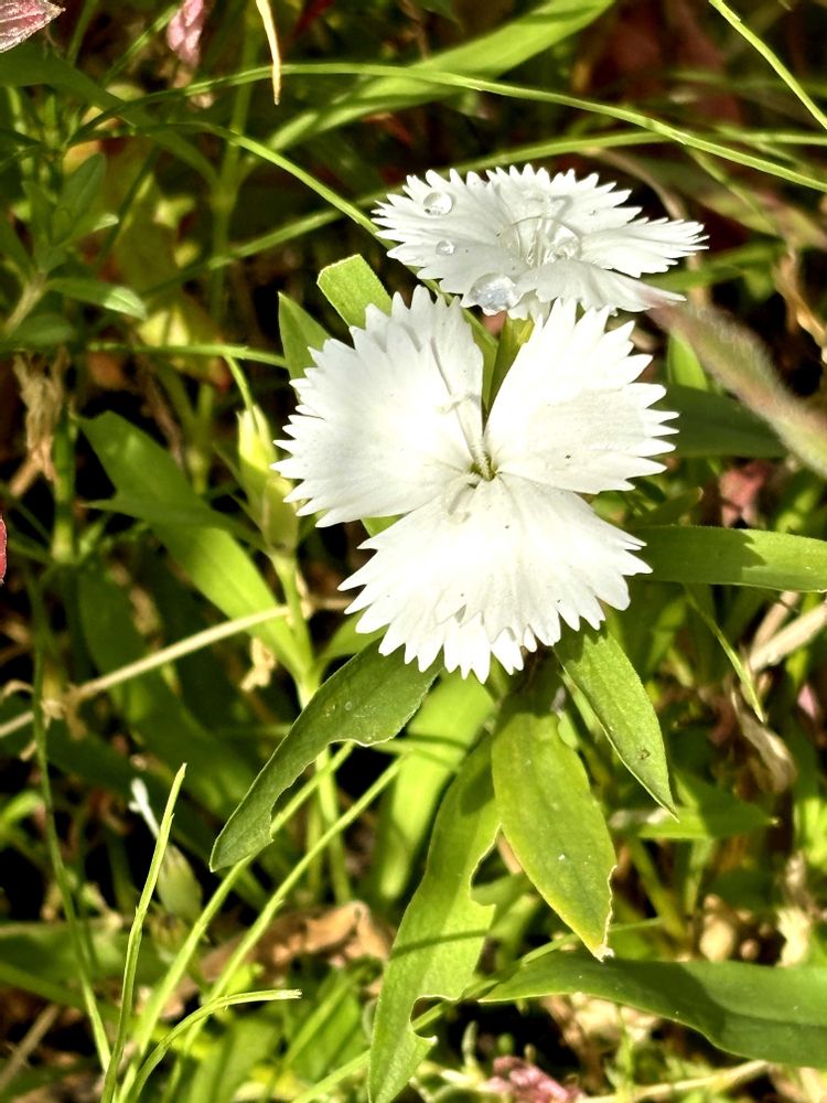 石竹は中国から来た品種で花弁の切れ込みが浅くてナデシコは日本の固有種で花弁の切れ込みが細かく糸状に裂けてるんだって‼️