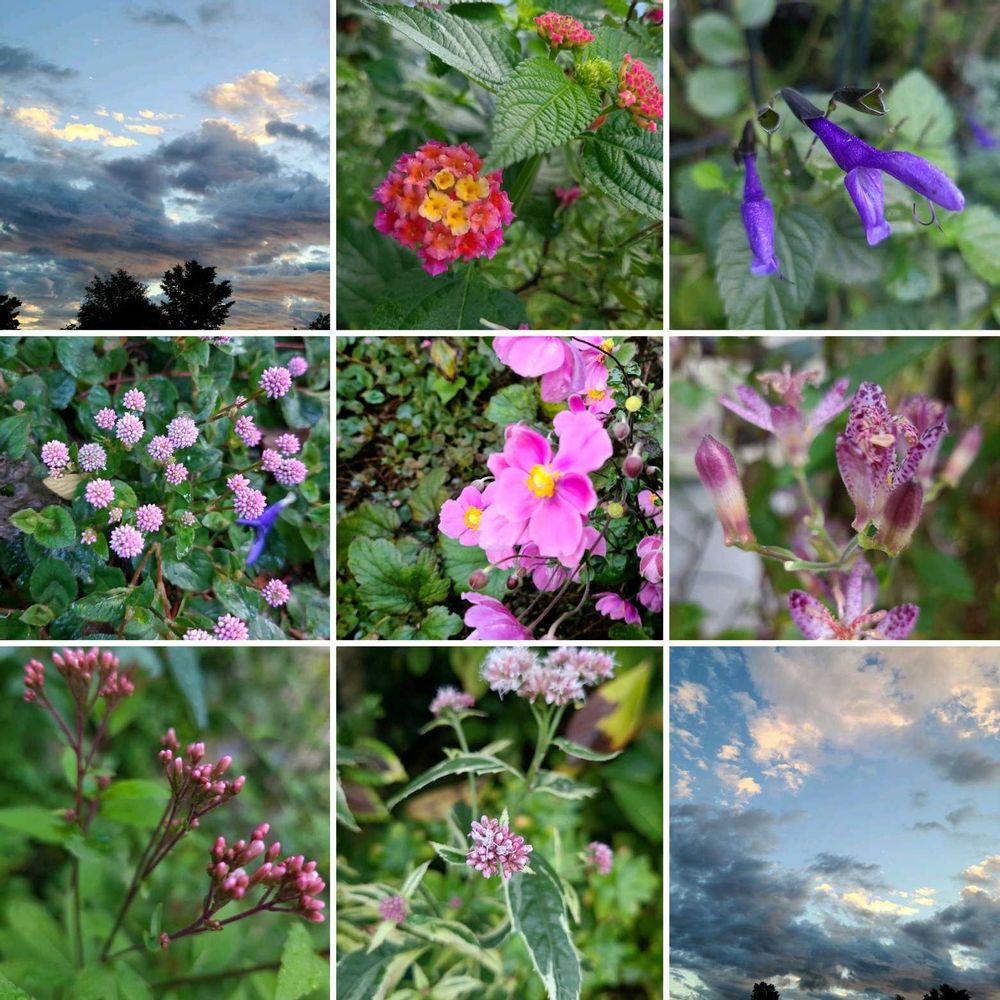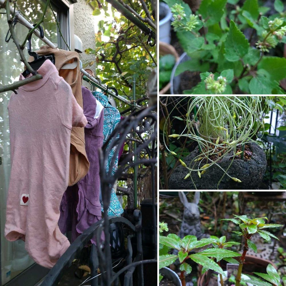 今朝の庭の花🌼🌱と東の空🌅と未来(みく)ちゃん🐶👧のたまった洗濯😅💦