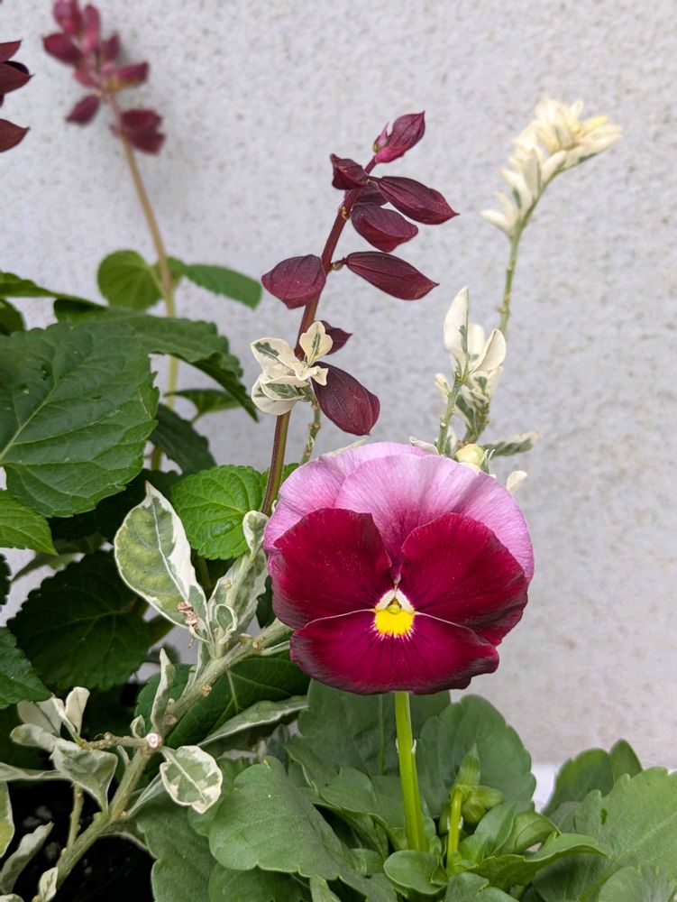 サルビアフェニックスルージュ,スノーサンゴ 斑入りソラナム,ビオラ おかめももかの投稿画像