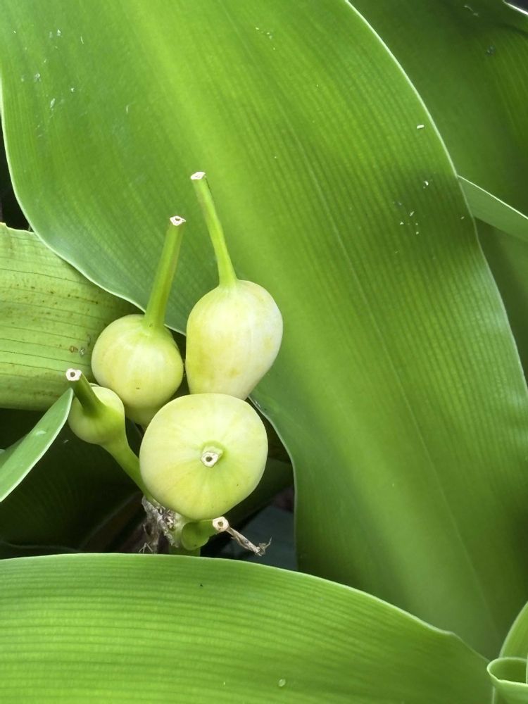白い実ができ、葉も青々としていました💓近くに、実がゴロンゴロン大量に落ちていました。増えるぞー💓