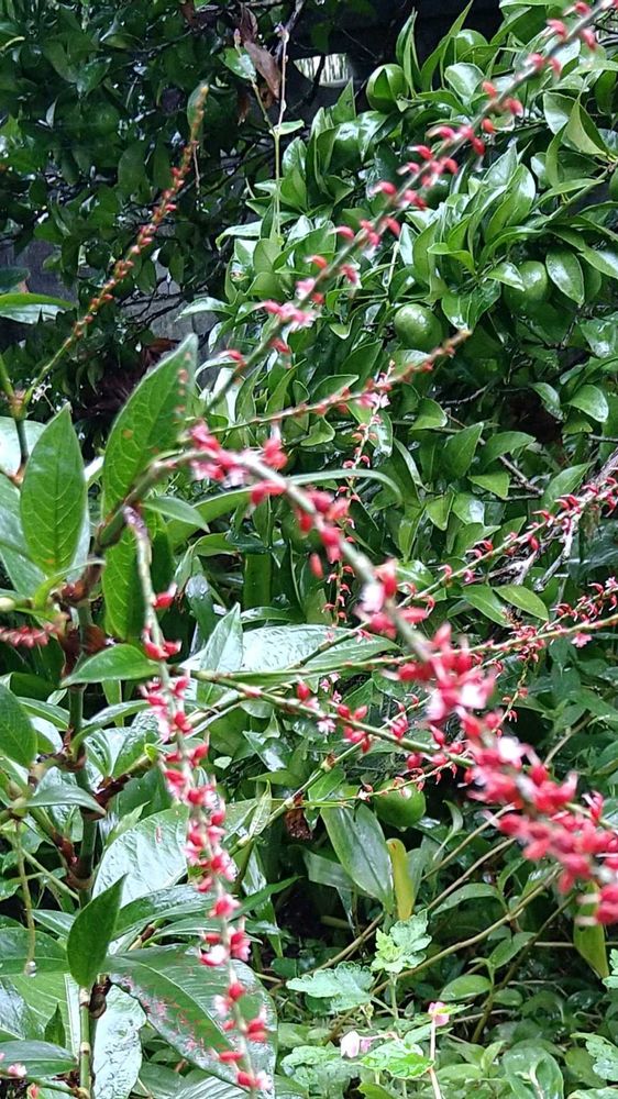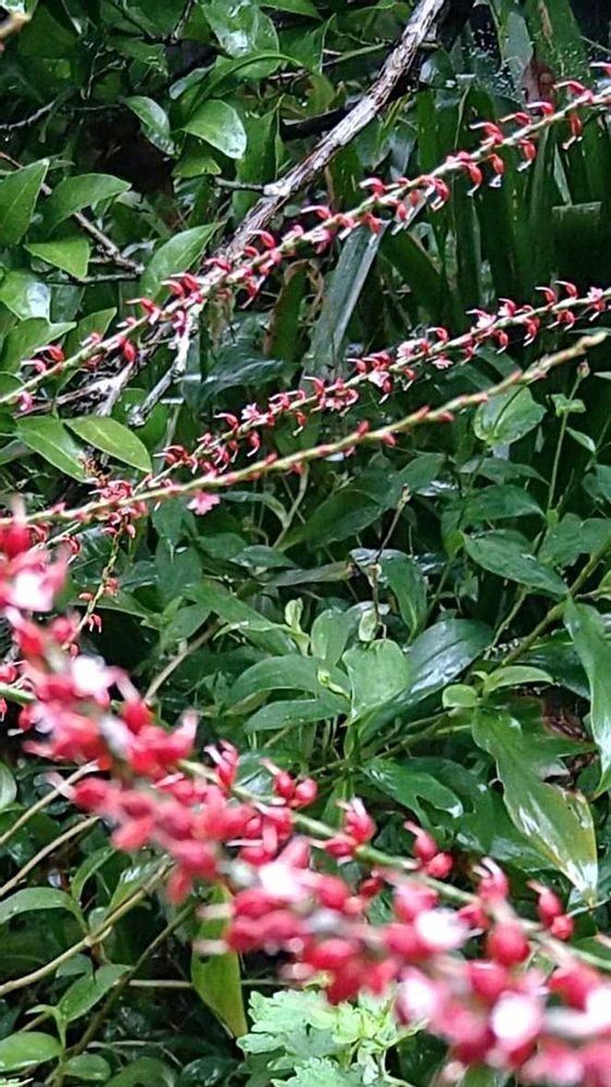 普通のミズヒキより葉が厚く光沢があり、花穂が長く花も密です🤗