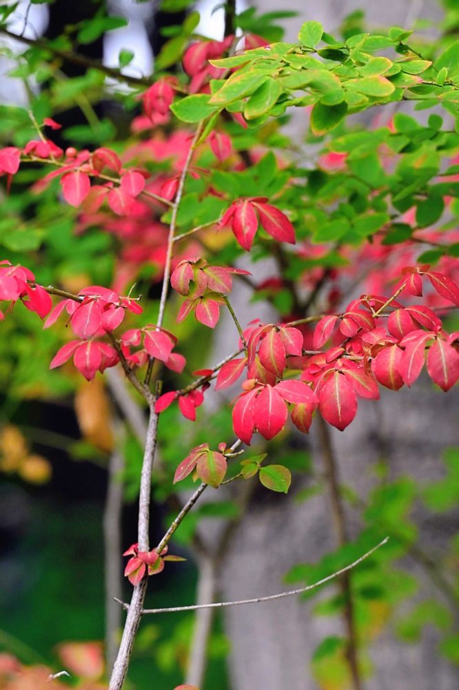 世界三大紅葉の一つ、ニシキギが紅葉を始めていました。