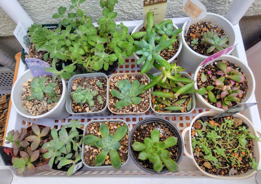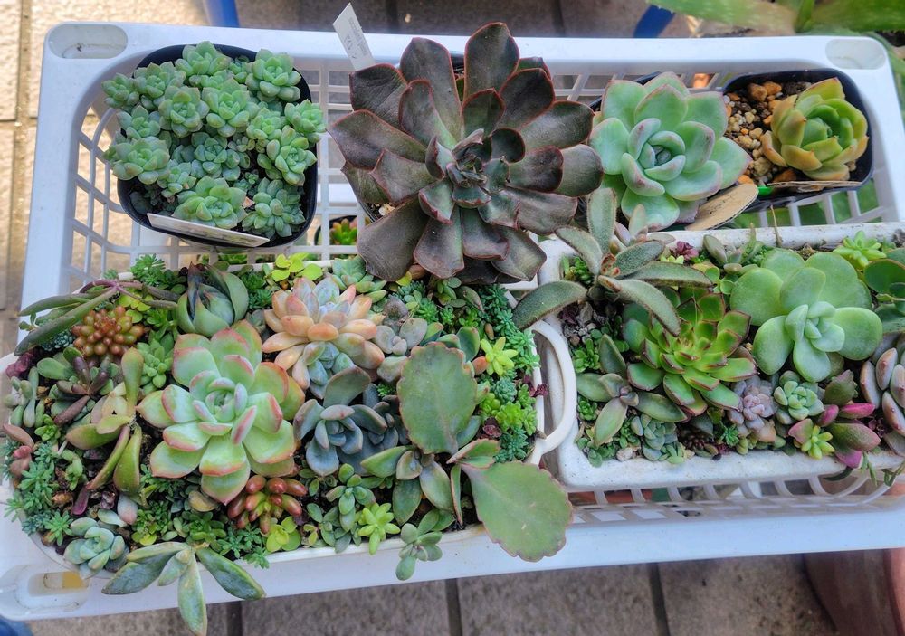 ③ザルに入れたエケベリアさんたちは安定のゴキゲン🎵