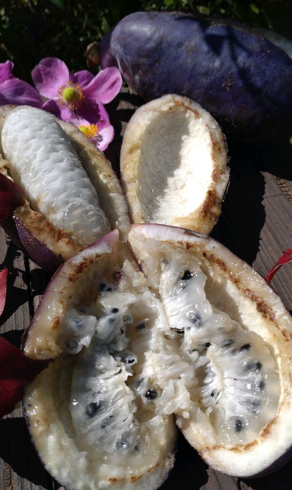 垣根にあったアケビは茶色でしたが中身は立派なアケビでした。