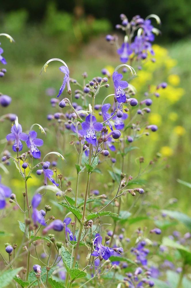 カリガネソウの青がセイタカアワダチソウの黄色の花をバックに映えている。谷津坂第一公園のはら。